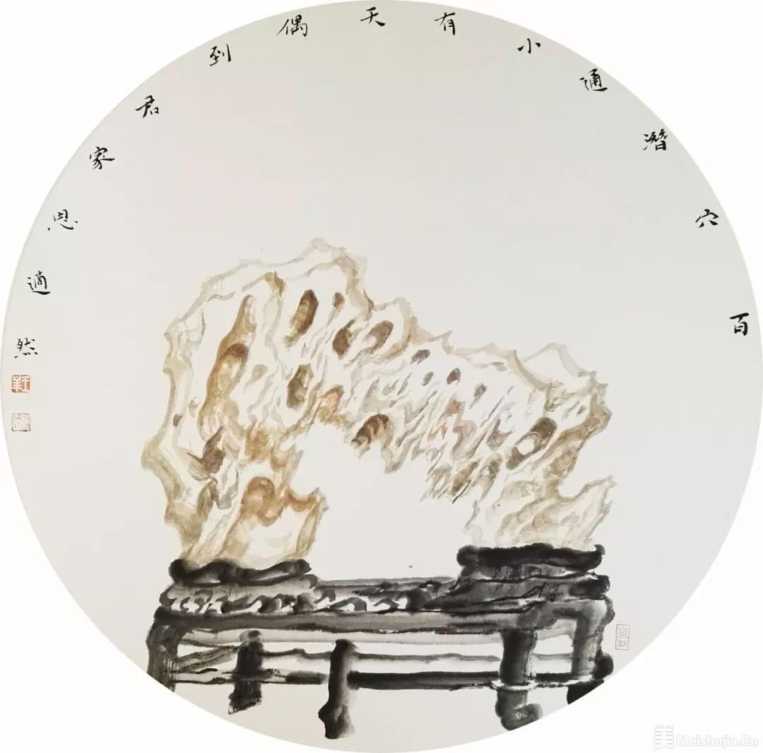 画太湖石的初衷是想通过画石头感受山水画里石法的线条和造型,取以小见大之意。画多了慢慢迷上太湖石之美,于是没骨、勾勒、点染、皴擦,乐在其中好长时间。太湖石的造型之美除了古代文人总结的瘦、漏、透、皱,还在于其在造化之中又在意料之外,天然一种勃勃生机。画太湖石又如营造一个理想的象外之境,可以极尽想象却又合乎造化。所以是很有意思的一个题材,古今都有很多画家涉及。一个有趣的现象是,西方审美里没有原石的概念,都是人工雕琢后的石雕,所以中国的公私场地长期以来都被巨石占据着,这里面肯定有传统文化对石头的长期审美习惯,这个传统, 估计从宋徽宗的艮岳和米芾的石兄就开始了。