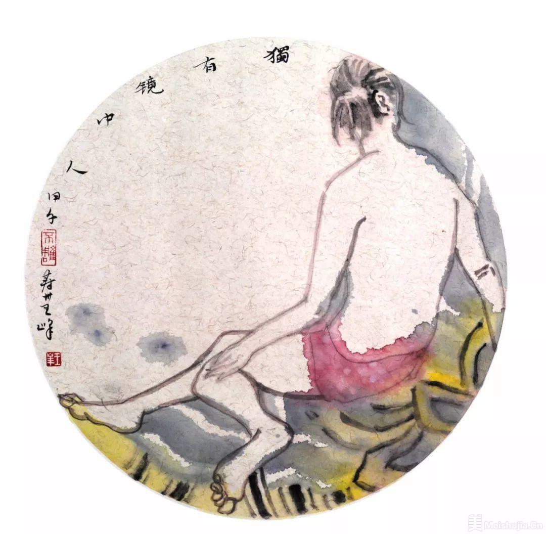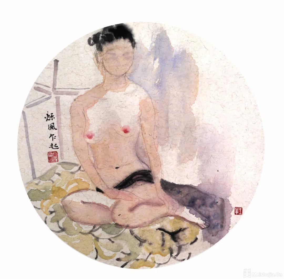 用水墨画人体纯属偶然,学院开设的人体课,带着学生用铅笔画速写画烦了,索性尝试用毛笔、水墨和宣纸,材料和构图是中式的,形式和色彩是西式的,画完题款盖章,倒也有些趣味。学院请的模特每年九月初从北京飞过来,待一个月,她们说感觉是来休假的,说这里比北京空气好多了, 天天高高兴兴的,很轻松,我画的也放松,每年总是这几位老面孔,身材也基本没变,所以每年都要换个招式,今年扇面,明年斗方,今年水墨,明年没骨。每次画最胖的大姐,往往会有佳构。
