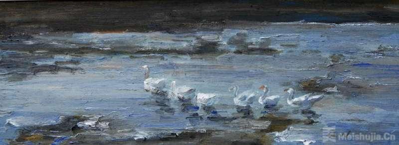 说他的画感性,是因为在他的画中总是渗透着情感内涵,观之令人心动。说他的画理性,是因为他总是把对人的生存意义、社会价值深刻的思考注入他的作品中,这是一种精神的超越。“艺先于技”的道理,在钱文的画中得到了很好的诠释。