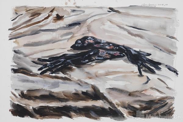 在图像的选择上,他没有设限到肉眼所见的真实世界。把电影、摄影等当作图像来源,全球范围内的视觉信息都可以供他检索,这也是他作品面貌“泛国际化”的成因。但这些图像在他手绘式重现时,经过了微妙的变形。再加上散乱的笔触和如同被黑灰色滤镜遮盖的色彩,原初的所有视觉信息都遭遇陈晗式的转化。理论化的潜欲下,他制造的图像笼罩在观念的结构中,重要的不只是具体的人、物、空间,更是从中外化出的普遍性。但这种普遍性在他的画面中没有明确的意指,是偏于混沌的暗示,需要观者调动直觉和个人经历来感受或思考。