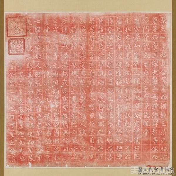 本次展览将展出台北故宫博物院收藏的碑帖拓本,包括常见的黑底白字拓本、减地阳刻的白纸黑字拓,以及以朱砂朱墨制作的朱拓本。重要展品有《兰亭序》摹本刻石中最为著名的定武本、高达三米的特大拓件等。