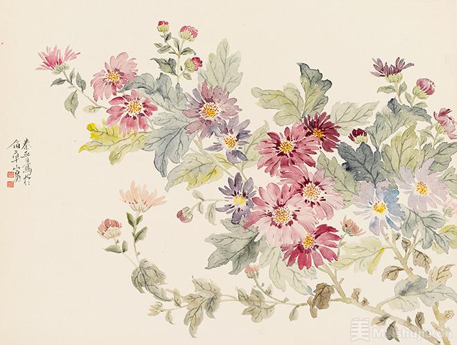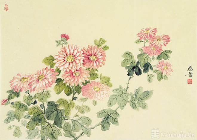 其三,宋秦晋对于自己的绘画路径有了更成熟的思考。从语言风格到题材表现,她都在做相应的梳理与取舍。他所表现的花卉题材非常多,非常繁杂,从北方的田园蔬果到热带雨林中的杂花与植物,都有所涉猎。但近一年来,她将这些题材有意识地加以整理,并且强化了其中的一部分,那些适合她总体风格的内容得以保留,并在此基础之上,突出没骨表现方式,使其更为鲜明。比如传统题材中并不多见的鼠尾草,却是她乐于表现、长于表现的。那些不适合语汇体系的,她有意识的加以分类,慢慢简化、淡化。比如大型的热带花卉,现在很少表现。所以她的绘画面貌得以不断的刷新,风格化语言形式变得突出。