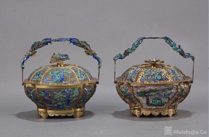 (6/7)铜胎画珐琅西厢记故事图攒盘,清代