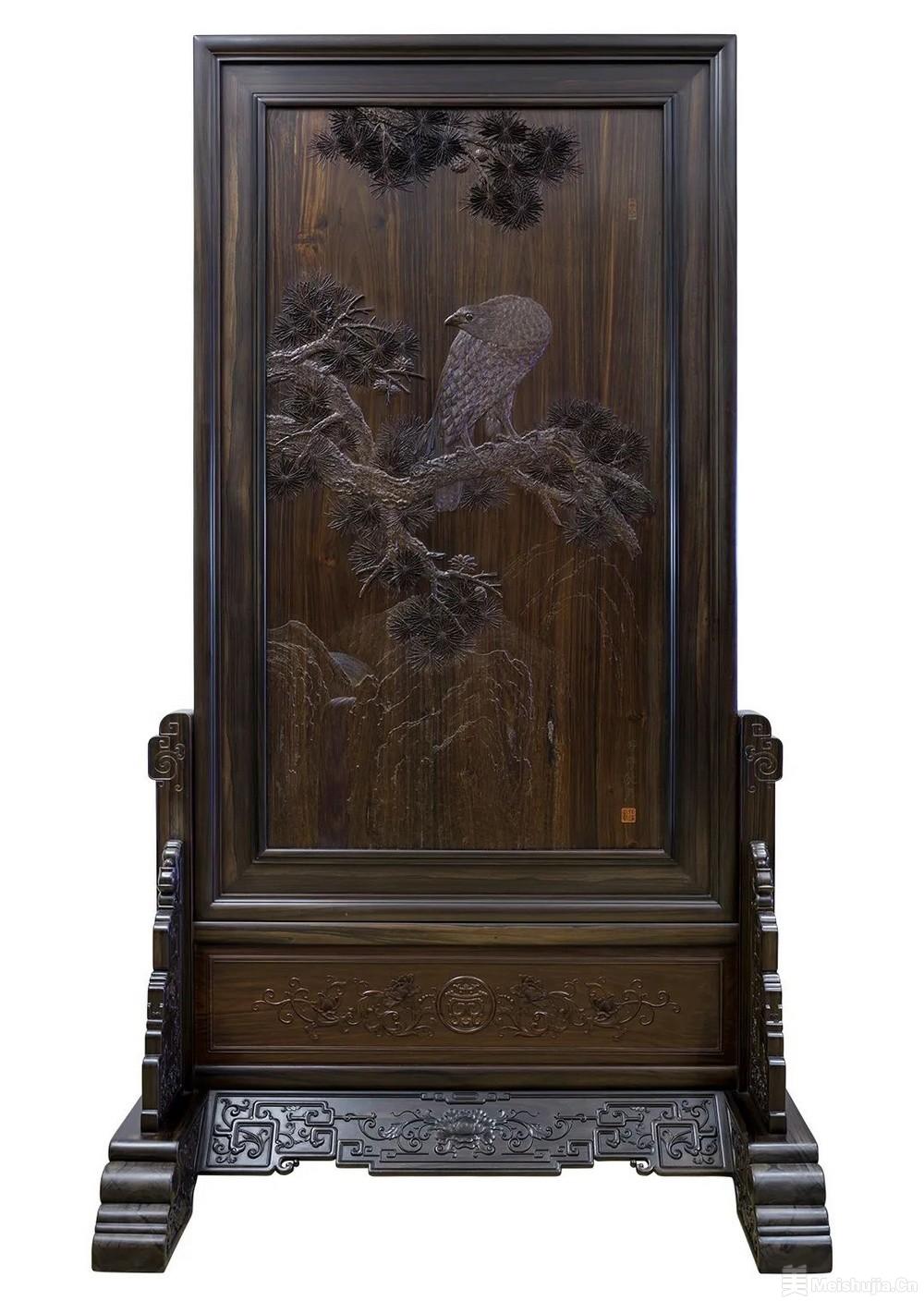 (1/6)落地屏《郎世宁白鹘图》,材质:大红酸枝、大叶紫檀