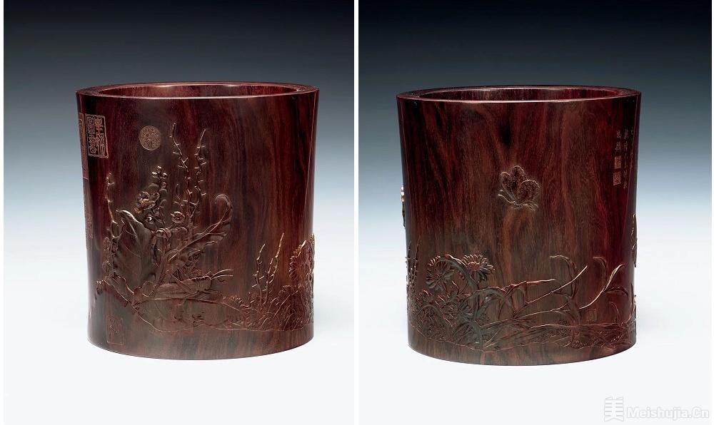 (3/6)笔海《写生蛱蝶图》,材质:小叶紫檀