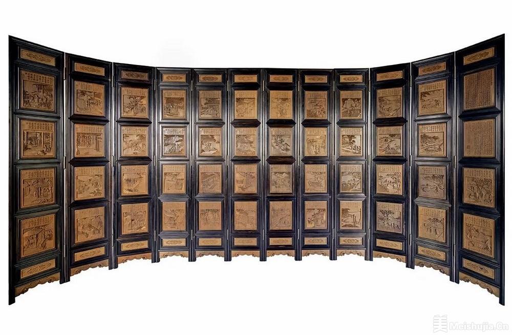 (4/6)落地屏《康熙耕织图》,材质:老红豆杉、大叶紫檀