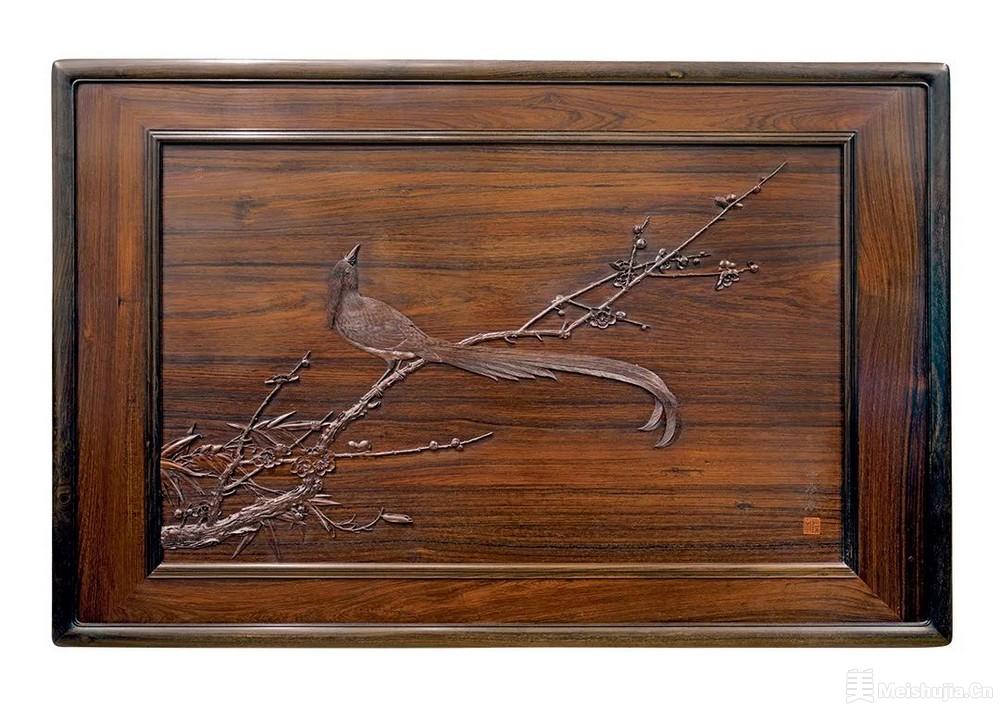 (5/6)挂屏《红梅鹧鸪图》,材质:大红酸枝
