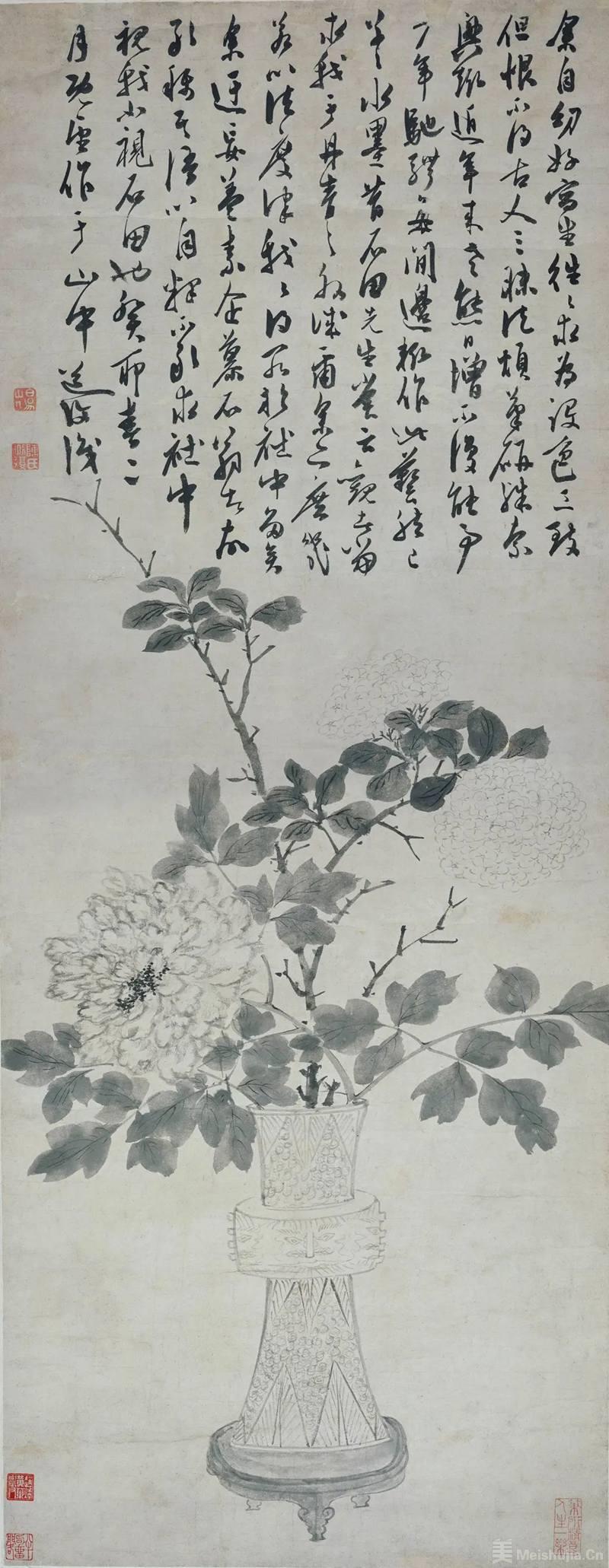 重点展品包括元代佚名《金盆浴鸽图》、明代陈淳《花觚牡丹图》、清代朱耷《杂画册》等,其他展品包括周之冕、恽寿平、居巢、居廉、任薰、任颐等明清时期在花鸟画领域较为著名的画家的作品,以及明代文徵明玄孙女文俶和清代浙江钱氏家族女眷陈书这两位女性画家的花鸟画作。