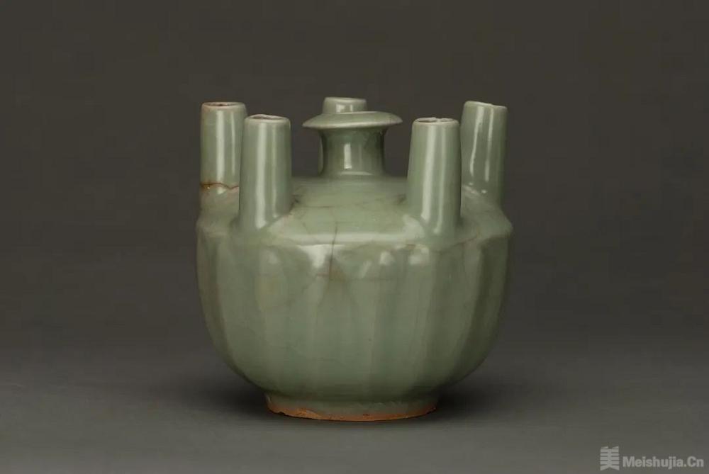 南宋晚期战争频繁,为躲避战祸,宋人把珍宝放入隐秘之处储存,这就是窖藏现象出现的直接原因。四川遂宁金鱼村窖藏是国内出土宋瓷数量最多、最精美的南宋窖藏,共挖掘出土瓷器985件,其中南宋龙泉青瓷逾350件。金鱼村窖藏多件器物被评定为国家一级文物,包括本次展出的南宋龙泉青瓷琮式瓶、南宋龙泉青瓷贯耳瓶、南宋龙泉青瓷鬲式炉。