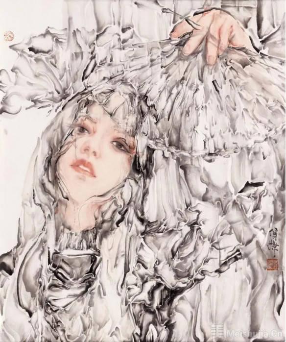 艺术家钟伟杰的创作多集中在对水墨人物的探索上,风格写意且繁密,自创个性化“水墨洛可可”画法,在水墨变化之间创造别具一格的艺术语言,展现他对新时代青年群体文化语境的深入思考。吴晨璐的作品更倾向于工笔重彩,对花鸟、树木、走兽等自然生物怀有深厚的感思,笔墨细腻、婉约,精致的设色,因此她的作品气韵生动,有一种静谧、悠然的氛围感。