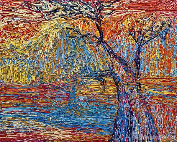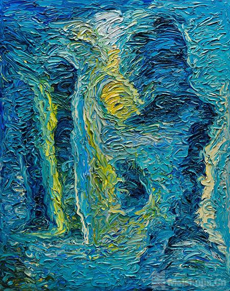 通过艺术,强光浩发现,其实他一直在灵界中游走,既寻找着个人情感的入口,同时又为灵界的激情建构纯粹的勃发形式。他积极关注自我在精神内核的灵性对话,挖掘情感深处的细微变化,把从童年时起所累积的成长体验与上下求索的艺术形式不间断地加以整合,试图开创一条完全属于个人艺术的独特之路。他的油画作品,在形式手法上已然抛弃表面的描绘,从笔到刀,最后发展到纯然的颜料堆积,并将这一堆积建立在对线性起伏的建构之上,从而成功地完成了个人语言的探索,建立起一座个人情感的纪念碑。