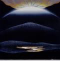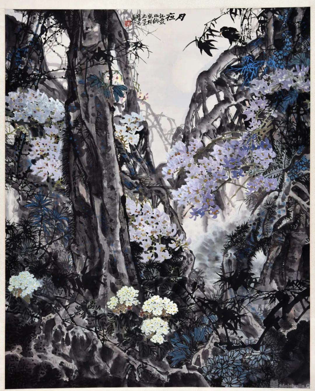 「山水常绿」单元共呈现43件山水画作品,力图通过不同风格的艺术山水,展现新中国不同时期的生态文明建设成果。重要展品包括刘自鸣《洱海》、王晋元《月夜》、姚钟华《圭山村寨》等。