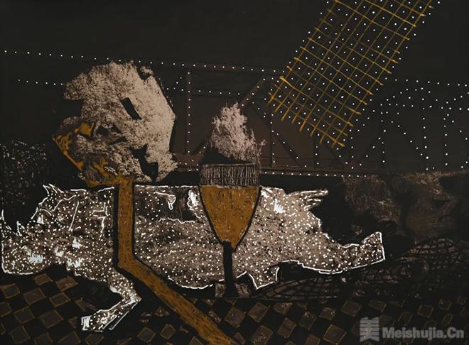 包勇试图在绘画中强化刺穿图像的力量,刺穿图像就是刺穿现实的虚幻感。
