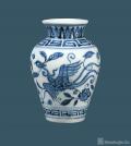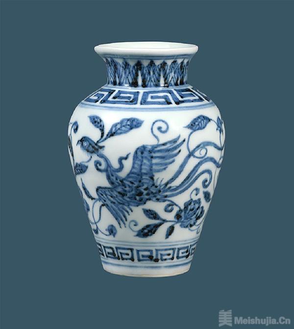 (3/7)青花穿花双凤纹瓶,「大明宣德年制」款,明宣德