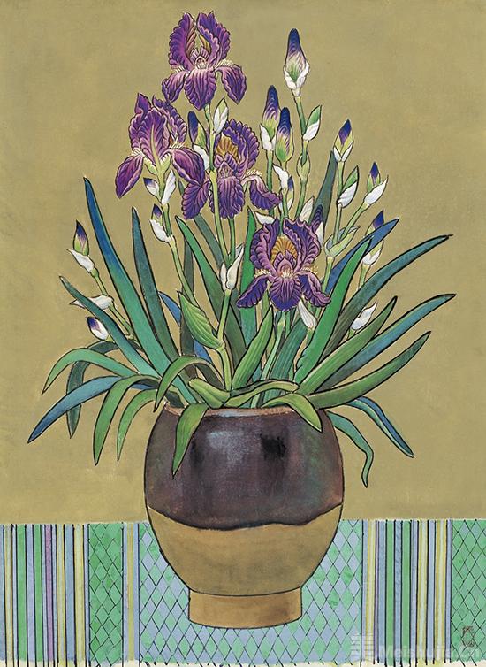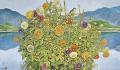 看祝大年彩画展,令我吃惊。他绘写-不如说塑造了一簇簇向日葵、百合花、芍药、大理菊……花靠媚态求生,正如许多人间女子,而祝大年的花全无媚态。作者一笔一画勾勒出每一个瓣,瓣上的转折倾斜,树叶的伸展卷缩,似乎都有关民族民情,他丝毫不肯放松,怕丧失了职守。“一枝一叶总关情”,祝大年虽低于郑板桥的芝麻官,却同郑板桥一般关注一枝一叶,这何尝不是牵连着民间疾苦的一枝一叶,作者品质的一枝一叶。