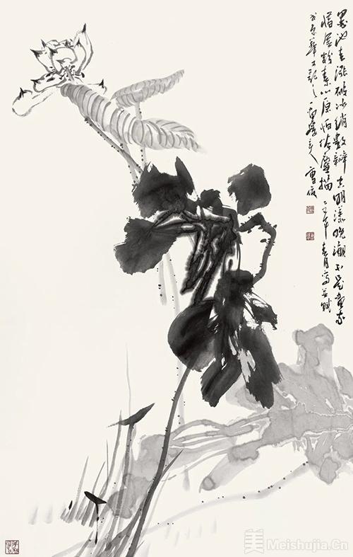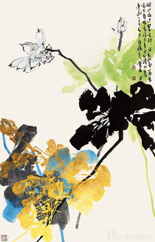 本场展览共分五个系列,分别是新宋式系列、宇宙系列、荷花系列、屏风系列、书法系列,其中“新宋式系列”里作者精心创作了十幅震撼人心的泼彩山水,代表作《流金旋舞》、《云扶玉嶂》意境悠远,浑然天成,让人叹为观止;“荷花系列”里有两幅宽4米,高2米的巨幅作品,构图巧妙,起承转折尽显作者心思;“书法系列”是今年首秀,11幅行书自作诗解读了曹俊先生始终坚守的“书画同源”的创作理念,他说是书法让中国画独秀于世界艺林。