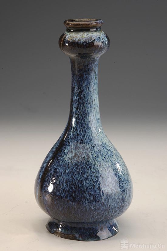 (3/4)石湾窑翠毛釉蒜头瓶,明代,广东省博物馆藏