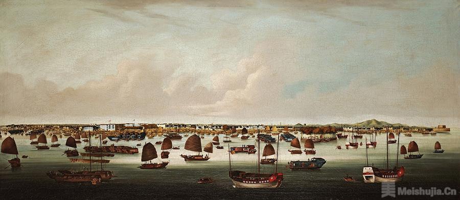 (4/4)《广州港全景图》,「煜呱」款,约1845年,广东省博物馆藏