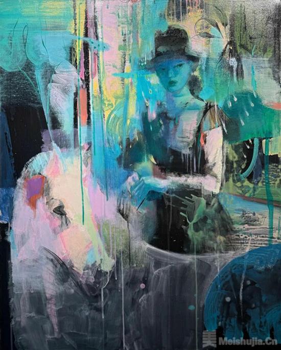 《叠城》所展出的作品几乎都是倪蓓蓓这两年在上海工作室完成的。相较以往,这批作品的下笔和色彩的干练显得更为果敢,也更为松弛。我们很容易猜测造成这种结果的原因:她在上海,不需要在作品中“讲点什么想法”、只需要在作品里“描述些自己的感受”;她也不需要冲着某些目标而面对作品,只需要延续自己的状态面对画面即可……因此她就放松、无谓,也就果断了——果断也意味着不讲究对错,只讲究做不做。