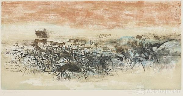 赵无极早年深受中国绘画与书法熏陶,毕业于国立艺术专科学校(今中国美术学院),师从林风眠、吴大羽等革新派画家。1948年,赵无极前往巴黎,发展出标志性的抒情抽象——一种澎湃奔放的视觉语言,将中国艺术元素和油画结合到版画的层叠技法,开拓出独树一帜的艺术风格。