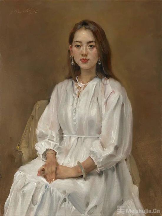 (3/5)白裙女孩 80×60cm布面油画2025年
