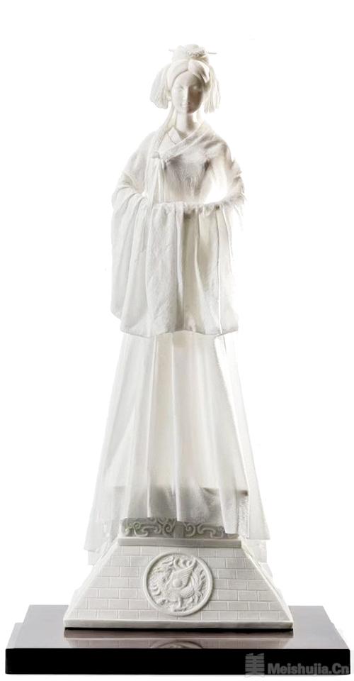 《神话》是以电影《神话》中玉漱公主为原型创作的德化白瓷雕塑作品,这尊以中国古典美学为魂、白瓷工艺为骨的作品将东方女性的温婉典雅与神话意境相融,一经亮相便凭借细腻造型与独特神韵“圈粉”无数。艺术家将坚硬陶瓷化作绕指柔纱,使玉漱公主的衣衫薄如蝉翼,发丝根根可见,可谓“远观为纱,近看为瓷”。当光影在蝉翼般的衣袂间游走,千年工艺与东方美学在此刻共舞生辉。