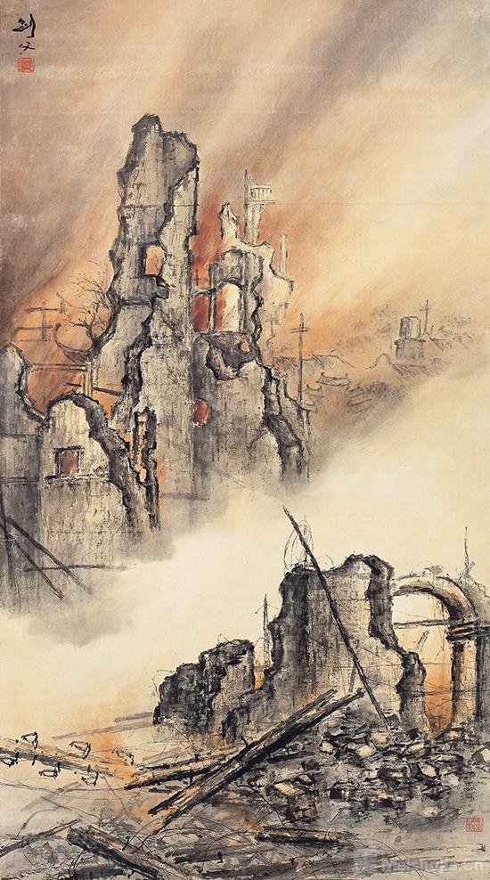 东战场的烈焰 (国画)   166×92厘米 1932年 高剑父  广州艺术博物院(广州美术馆)藏
