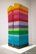 作为中国当代观念性纸艺术的代表艺术家,王雷的作品通过纤维解构、材料重组等实验手法,既保留生活用纸、旧报纸、古书籍等纸材料的文化记忆,又赋予其自由的时空维度。其历经8个月创作完成的大型纸艺作品《兵者无形》,气势磅礴,让观者颇为震撼。该作品以报纸为材料,通过搓线、编织技术将清朝康熙皇帝的“阅兵甲”与现代文化相结合,看似作者只是进行了单纯的形式语言复制,而事实上却通过解构与重组的方式,将战争与和平、武力与文化、脆弱与坚硬、历史与当下进行多重语言呈现。