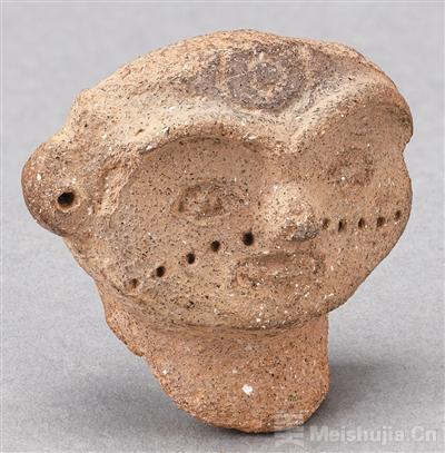(1/3)新石器时代双墩文化陶塑雕题纹面人头像。