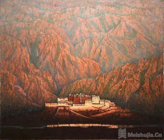 何哲生的艺术经历扎根于巴蜀文化的肥沃土壤,自幼受家乡山水熏陶,他的创作从一开始就注入了地域的深情。何哲生先生出道很早,很年轻时候就入选了高级别的艺术展览,在数十年的艺术生涯中,他以饱满的激情,创作了众多有影响力的作品。在艺术旅程中,他始终坚守对艺术的赤诚,将个人成长与时代变迁交织在画布上。他的作品在整体上呈现出一种“有机整一性”,天、地、人在其中和谐共存,这源于他对中国传统哲学中“天人合一”理念的深刻理解。在他的画作中,自然元素与人文活动彼此不是孤立的部件,而彼此交织融合,构成生命共同体。这种整体观照之眼,使他的艺术超越了简单的风景写生,升华为对宇宙秩序的沉思。