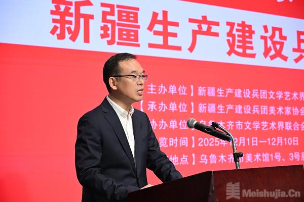 孟祥宁在致辞中指出,一代代兵团人扎根天山南北,用汗水浇灌出绿洲,用青春构筑起家园。兵团美术工作者始终与时代同频、与人民共振,以画笔为犁深耕岁月,以色彩为歌礼赞山河。他强调,本次展览是兵地文艺工作者深入贯彻习近平文化思想、扎实推进文化润疆工程的一次生动实践,也是兵地美术创作深度融合的直观体现。