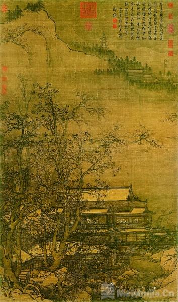 寒林山水兴于十至十一世纪,后被赋予丰富的文化内涵,发展为一种山水画程式。画中的平远山水、疏林枯槎等形象所展现出的萧散淡远、幽冷荒寒的美感,是画家超然心境的视觉表征,也成为中国画所追求的审美境界。