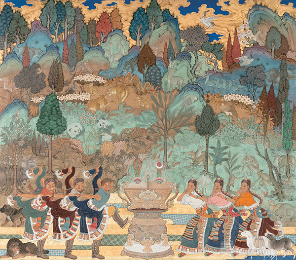 川藏绘画的关系是“同源异流”与“异流同源”的辩证统一。当代“隔山对话”展览让这种关系进入新维度。“中国画的民族表达”与“唐卡的汉地元素”,展现“阻隔中的联通”。四川美术的“天人合一”和西藏美术的“神俗相通”,两者都以自然为精神载体——蜀山的烟雨与藏地的雪峰,都是人类对自然的敬畏与赞美;四川画家笔下的人间烟火与西藏画家的牧民生活都饱含对生命的尊重。正如横断山既是地理屏障,也是文化通道,川藏绘画的关系也超越了“影响与被影响”的单向叙事,形成“各美其美、美美与共”的共生格局。这种交融的深层逻辑,是“自然崇拜”与“人文关怀”的精神共鸣。