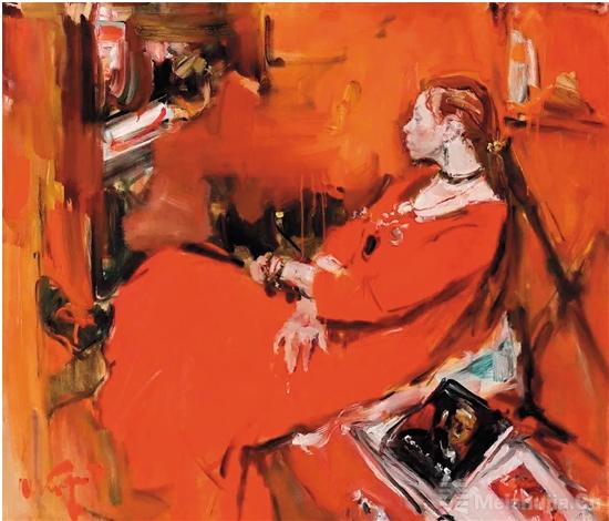 戈留塔的艺术精神与中国写意相同之处很多,不过在形式语言与媒介逻辑方面,二者差异明显。油画和水墨材料有不同特性,也体现出中俄艺术在“空间”“形体”和“观看方式”方面存在根本的分歧。从笔触和媒介特性角度看,油画是一种“叠加性”的媒介,艺术家能通过层层叠加颜料构建画面,每一层颜料叠加都给作品带来了新的质感和深度。如戈留塔的画作《梅丽莎》(1997年)中,人物肌肤的明暗过渡是经由这种叠加手法达成的,艺术家不断覆盖、叠色,从而形成视觉深度,也让画面有了强烈的肌理和语言。这位艺术家喜欢用大刷子、大笔触,讲究流动感,笔走龙蛇,一气呵成,这与水墨所探讨的精神有了许多共通的地方。