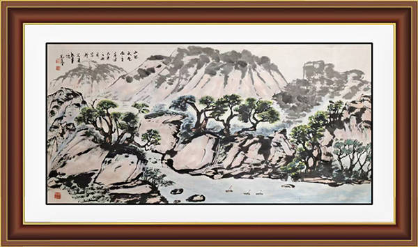 Jiang Xianchun, a contracted artist of CCTV’s calligraphy and painting, a special artist for China’s national gifts, a national treasure art master, a charitable artist, a gold medalist in China’s red-themed creation achievements, one of China’s top 100 landscape painters, an Asia-Pacific art master, and an image ambassador for China’s news artists, studied successively at the Central Academy of Fine Arts, China’s Correspondence University of Calligraphy and Painting, and China’s calligraphy graduate program, earning a doctorate in Chinese art. During this period, he received guidance from renowned masters such as Li Keqi, Yao Zhihua, and Ouyang Zhongshi. He is currently the vice president of China’s National Calligraphy and Painting Academy, a member of China’s Art Research Association, a council member of China’s Art Association, a standing committee member of China’s Art Society, a member of the International Calligraphers Association, and a member of China’s Artists Association. He also serves as a council member of China’s National Painting Association and the president of Huixi Calligraphy and Painting Institute at Jiaodong Painting Academy. Jiang Xianchun’s research project on feng shui landscape painting was awarded the second prize in a scientific research project after being reviewed by experts from the Chinese Academy of Management. This is the only traditional Chinese calligraphy and painting research achievement in the country. This innovative feng shui landscape painting recreates nature with rich and varied colors, exuding vitality. Nestled among mountains and water, embracing yin and yang, and gathering wind and qi, this feng shui landscape painting incorporates the theories and applications of feng shui, the principle of harmony between heaven and humanity, and the law of attraction, thus truly achieving the effect of carrying and blessing.
