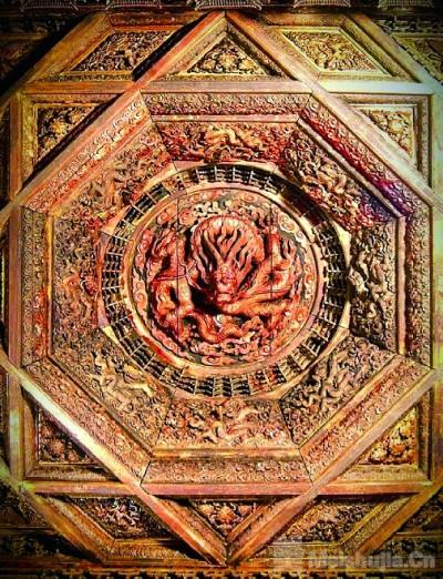 在更细微的层面,藻井还折射出古人对于宇宙的情感。它不是冷峻抽象的几何图式,而是被云龙、莲瓣、海水江崖等纹样填满的“有人情的天空”。盘旋的龙纹,寓意帝王承天受命;舒卷的莲瓣,象征净土与清明;翻涌的水浪,则指向永续不息的生命之流。人们在这样的穹顶之下生活、朝会、祭祀,久而久之,宇宙仿佛成为可以被抬头看见的存在。