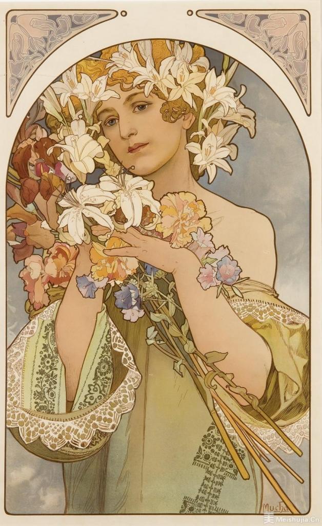 穆夏是捷克新艺术运动时期画家、装饰艺术家,新艺术运动代表人物,他的创作涉及插画、海报、绘画、剧院设计、珠宝设计、装饰艺术等诸多领域。