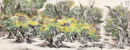 8年前,阿童牧丝路风情和新疆山水画展曾在澳门举办,这次又给澳门观众带去了他的胡杨国画作品。策展人、《新疆文艺界》执行主编孤岛认为,阿童牧的胡杨国画有三个明显特点:其一,他画的都是老胡杨、枯胡杨和半枯胡杨,老胡杨形象高大魁梧、沧桑壮丽,有一种磅礴气势与傲然风骨;半枯或干枯的胡杨,壮丽中有一种悲凉感,可唤醒人们生态保护意识。其二,在用笔上,阿童牧画胡杨常常使用大小篆以及楷行草隶书的书法笔法创作,使胡杨更有筋骨、风骨、傲骨,呈现别具一格的沧桑又辉煌的画风。同时,通过使用劈扭挫逆、拖疾绕顿等笔法,以增加胡杨的沧桑质感。其三,在结构和色彩上,阿童牧将胡杨树林画得很浓密,密中透风,实夹幻疏,偶尔以丝路骆驼点缀,再加上四季变化的丰富色彩——绿、黄、金、红、紫等,给胡杨的古老意韵增添了新的浪漫色彩。