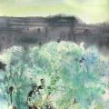 《南湖路系列之江南又绿》 纸本水彩 75x55cm 江南是我的血脉所系。我以“绿”为基调,那并非眼前之色,而是湿润时间里藤蔓与粉墙的对话,是春风又绿江南岸。这个“绿”是动态的,点线面是系统地流动的,线条走势是游走迂回的,交谈的语言是低语内省的,它邀人沉入一片形而上的宁静。 陕西的黄土塬上,天地骤开。我运用凝重的“黄”与“赭”,笔触粗粝如斧凿,再探入一抹精神性的“红”——那是从土地深处蒸腾起的、混杂着信天游与古老记忆的基因。色彩在此有了重量,语言转为浑厚的吟啸,是与磅礴历史对话的坦白。